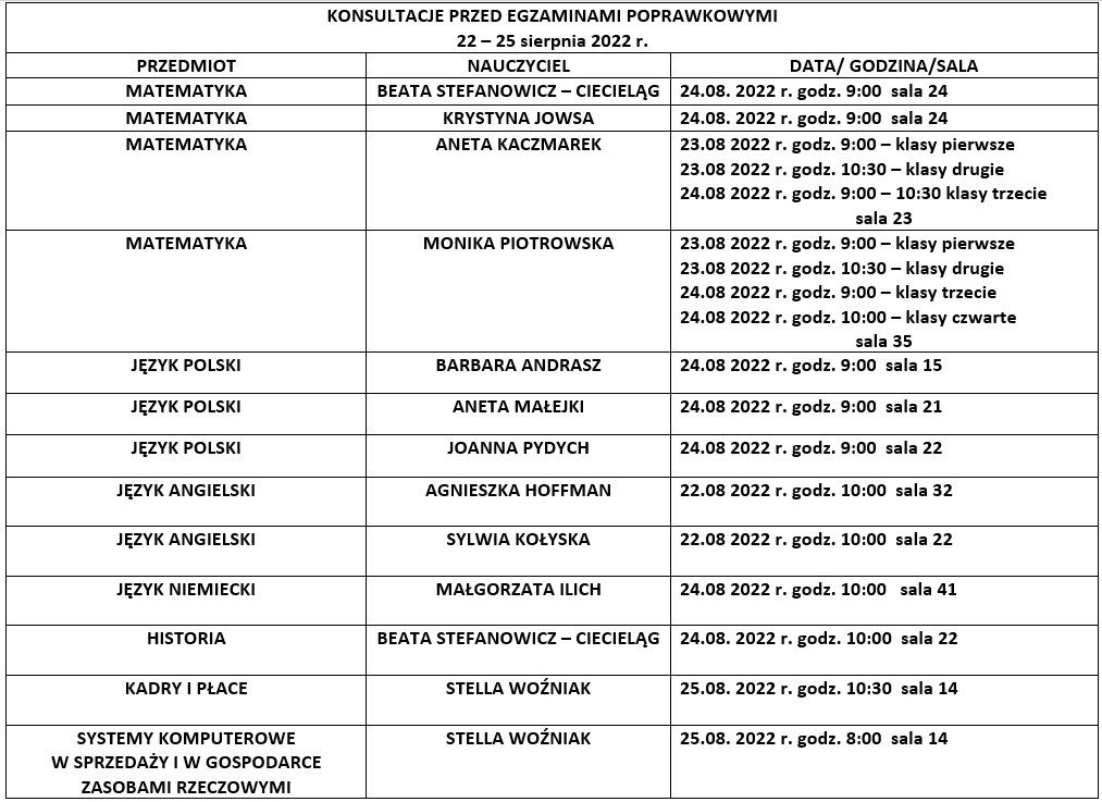 • Terminy konsultacji przed egzaminami poprawkowymi