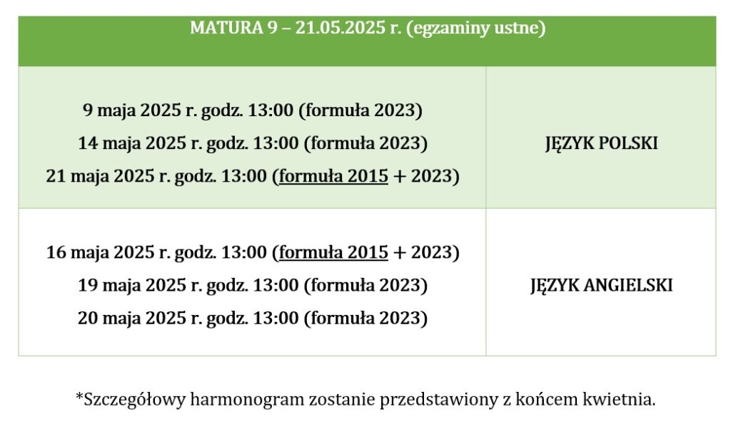 • Harmonogram matura 2025
