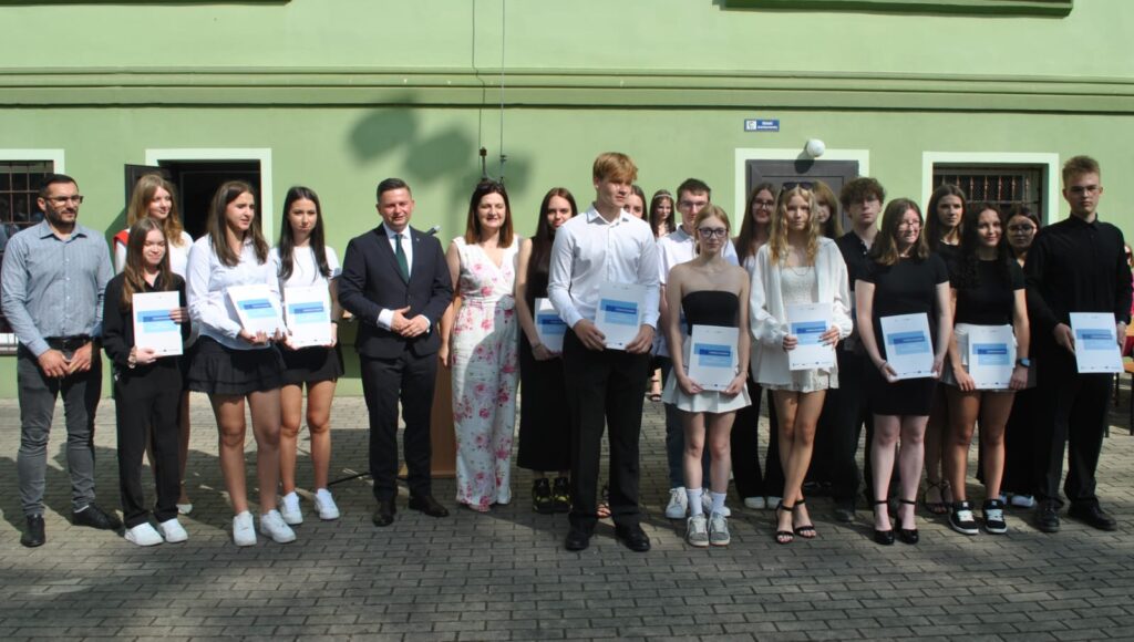 📌 Uroczystego wręczenia stypendiów w imieniu Marszałka Województwa Opolskiego Szymona Ogłazy dokonał Maciej Krzysik – członek Zarządu Powiatu Nyskiego.