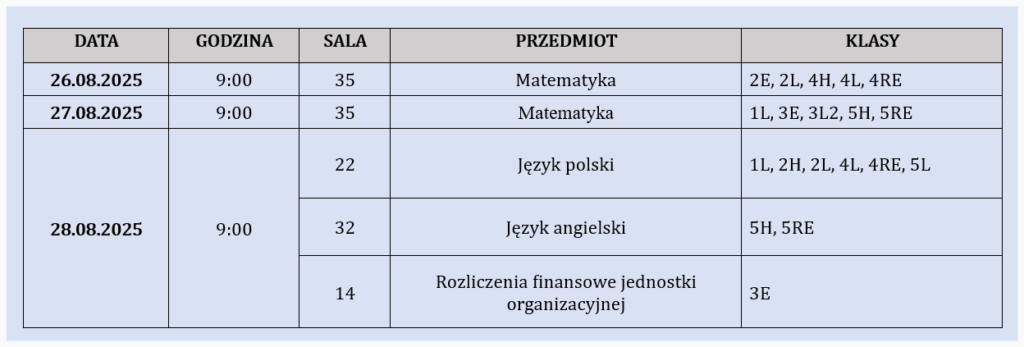 • Terminy konsultacji przed egzaminami poprawkowymi