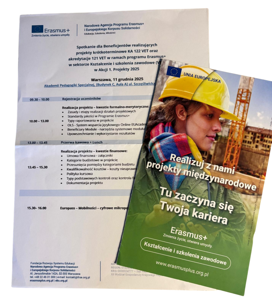 Projekt realizowany jest pod numerem 2025-1-PL01-KA122-VET-000345303 i koordynowany przez szkolne Biuro Projektu – dofinansowane z UE na kwotę 104 355 EUR.